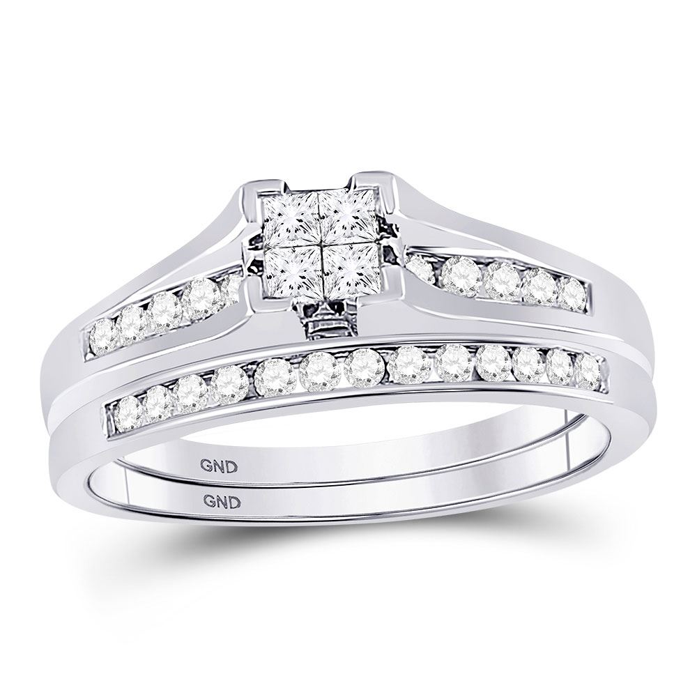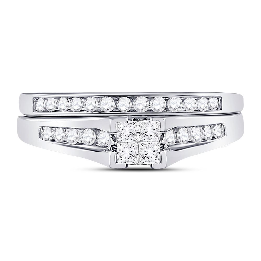 10kt White Gold Princess Diamond Bridal Wedding Ring Band Set 1/2 Cttw.