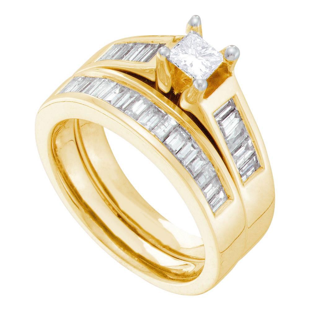 14kt Yellow Gold Princess Diamond Bridal Wedding Ring Band Set 1-3/8 Cttw.