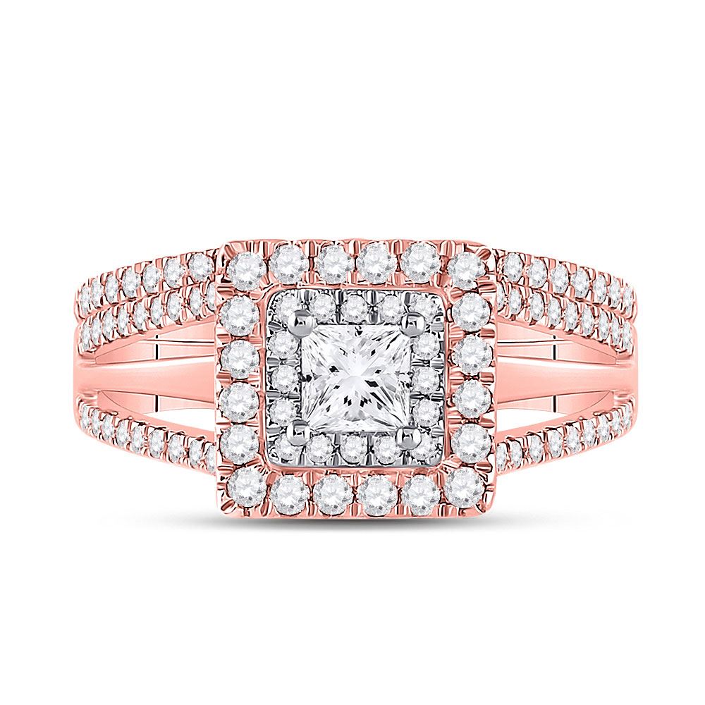 14kt Two-tone Gold Princess Diamond Bridal Wedding Ring Band Set 1 Cttw.