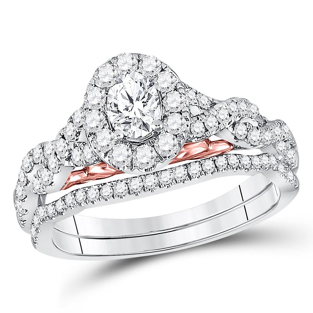 14kt Two-tone Gold Oval Diamond Bridal Wedding Ring Band Set 1 Cttw.