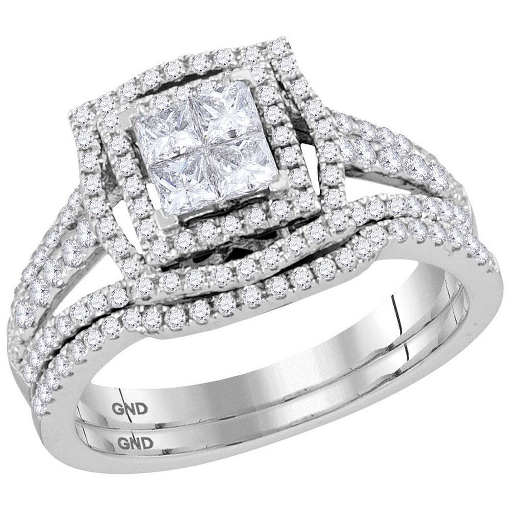 14kt White Gold Princess Diamond Bridal Wedding Ring Band Set 1 Cttw.