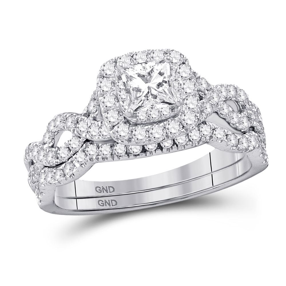 14kt White Gold Princess Diamond Bridal Wedding Ring Band Set 1 Cttw.