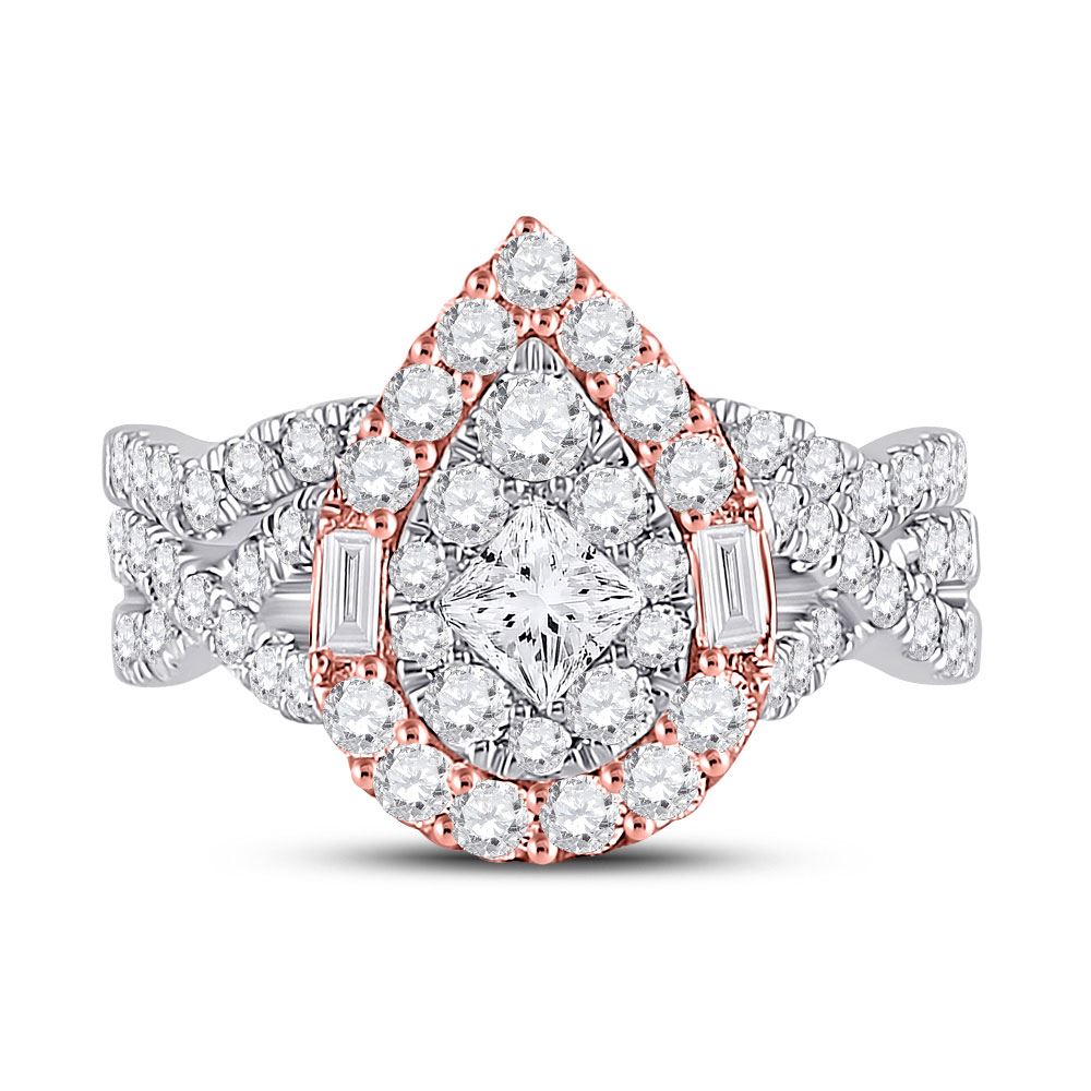 14kt Two-tone Gold Princess Diamond Bridal Wedding Ring Band Set 2 Cttw.