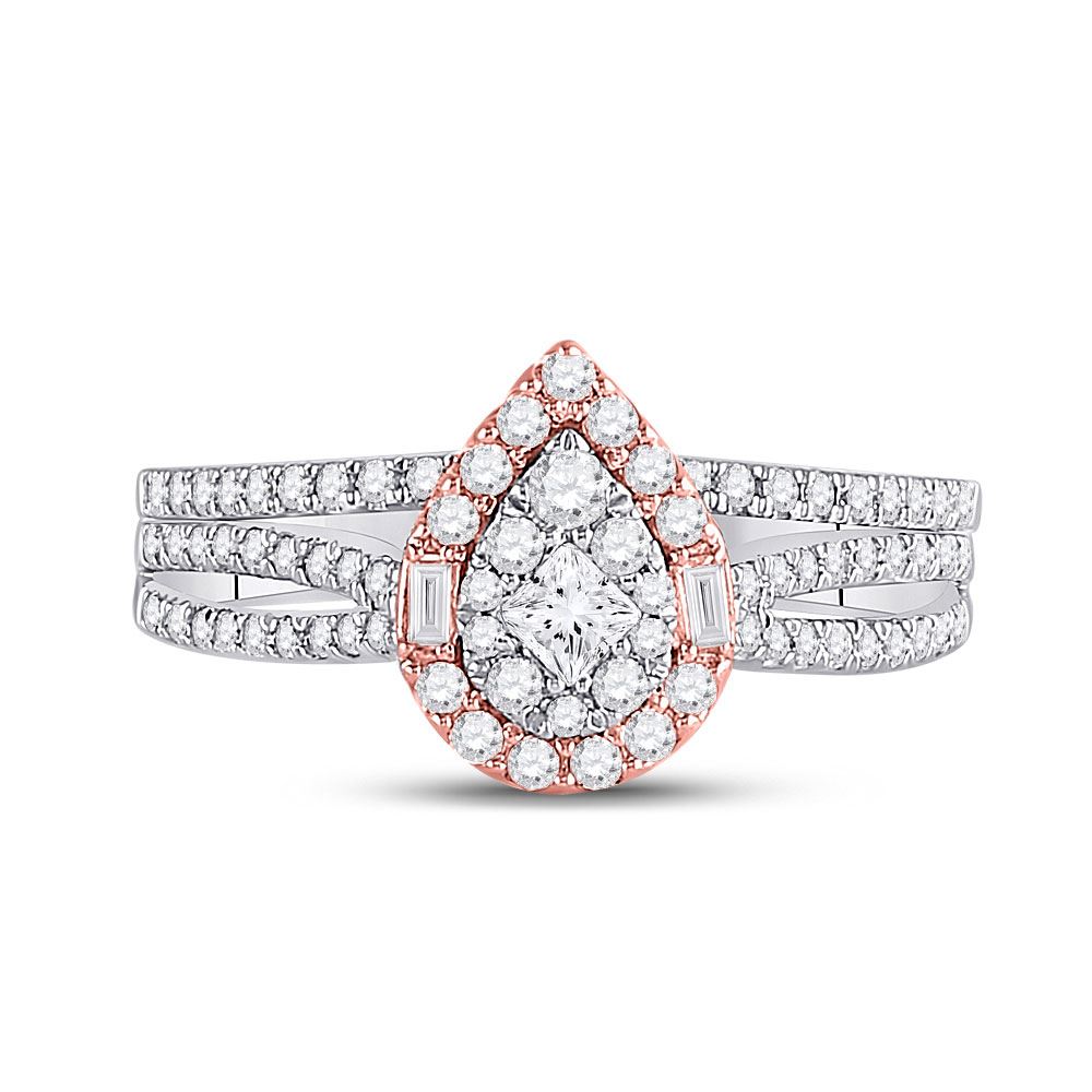 14kt Two-tone Gold Princess Diamond Bridal Wedding Ring Band Set 3/4 Cttw.