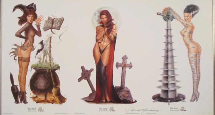 Three lovely creatures of darkness, no waiting--take your pick! * Artist: Patrick Meadows * Signature: In pencil, lower right Title: The Witch, The Vamp, The Bride * Medium: Print on paper Sheet Size: 18" x 32" Date: 2003Condition: Excellent
