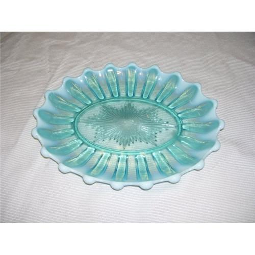 This is a Brideshead 19th Century Davidson Glass Oval Tray that is Blue Opal in color. Any other q's, just email me. Thanks for looking!