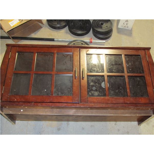 3pc, glass sliding doors, tall cabinet, console table and shelving