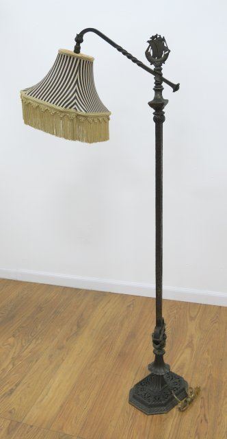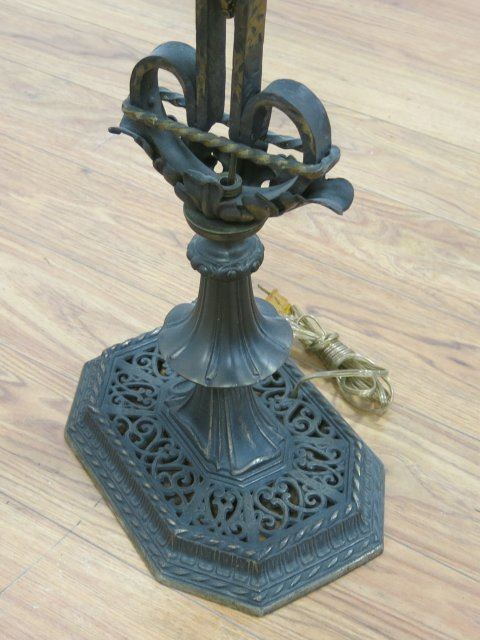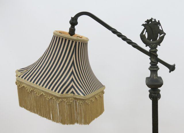 Silk striped shade. Sailing Ship on top. Approx. 61" H. (4126) Good condition.