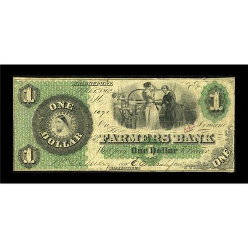 <B>Bridgeport, CT- Farmers Bank </B></I>$1 Sept. 1, 1862 G4a <BR> A very scarce note with a green tint over much of the front. <B>Fine,</B></I> with a tiny bit of writing on the face. <BR><BR><b>Shipping:</b> Coins & Currency (<a target="_blank" href="http://www.heritageauctions.com/common/shipping.php">view shipping information</a>)