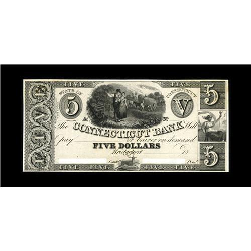 <B>Bridgeport, CT- The Connecticut Bank</B></I> $5 G76 Proof<BR>A scarce Proof which was not part of the ABNCo holdings sale. <B>Uncirculated,</B></I> with the signature blocks cut out, mounted on light card stock.<BR><BR><b>Shipping:</b> Coin/Currency (<a target="_blank" href="http://www.heritageauctions.com/common/shipping.php">view shipping information</a>)
