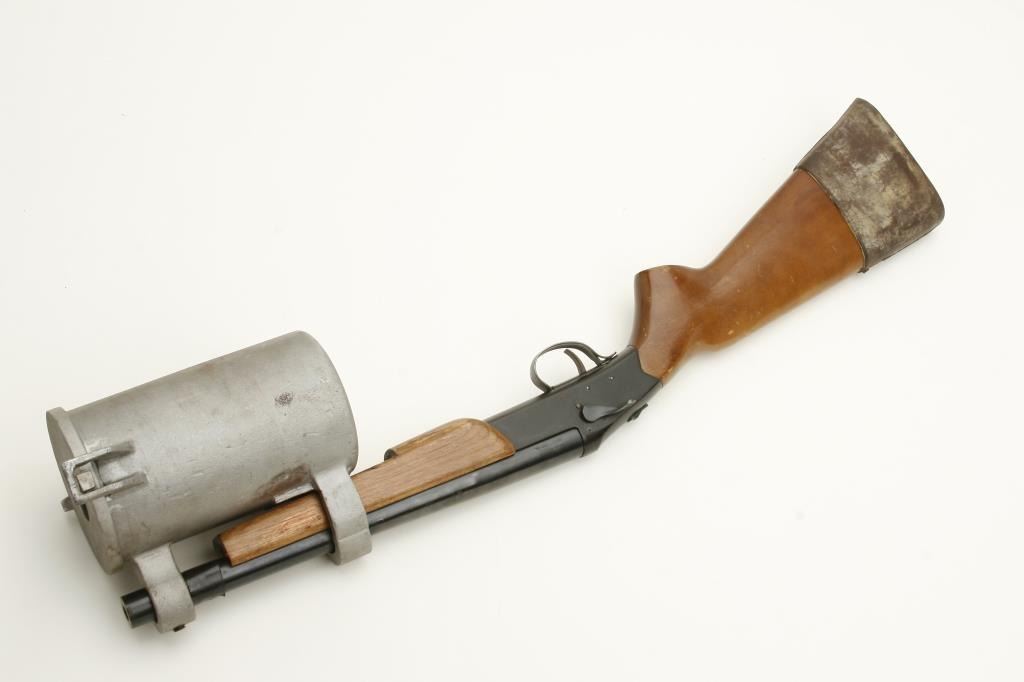 blank only in case with instructions and accessories with break open action, S/N P03293. “Naval Co., Doylestown, PA.” label on line drum with instruction sheets. 4 brass bolts, line, and various accessories are included. In very good to near fine condition with trunk case. Est.:$1000-$2000