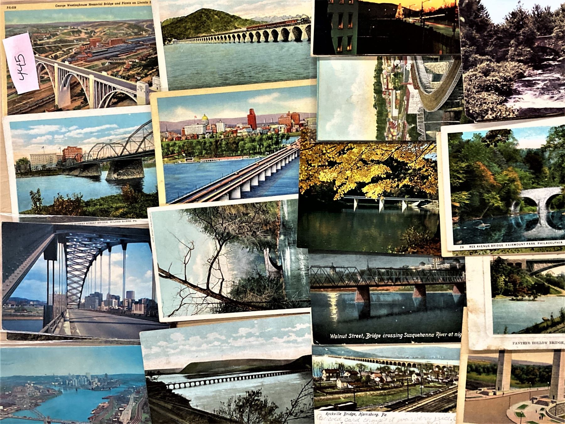 Box of sorted bridges, North Carolina to Wyoming and some international. Early to standard size.