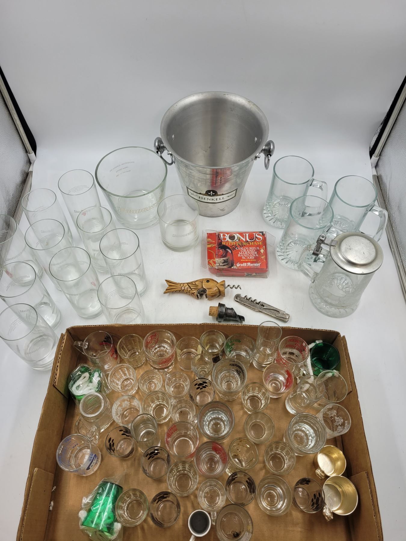 Bridgestone Ice Bucket and Glasses and Colorful Shot Glasses