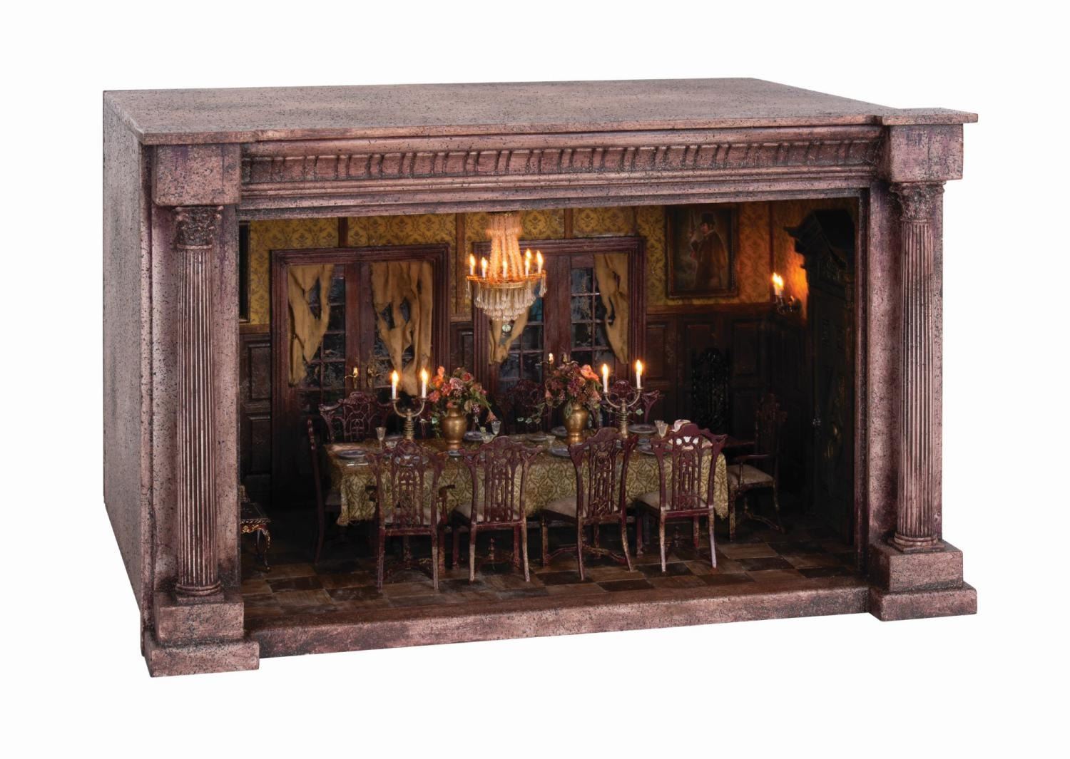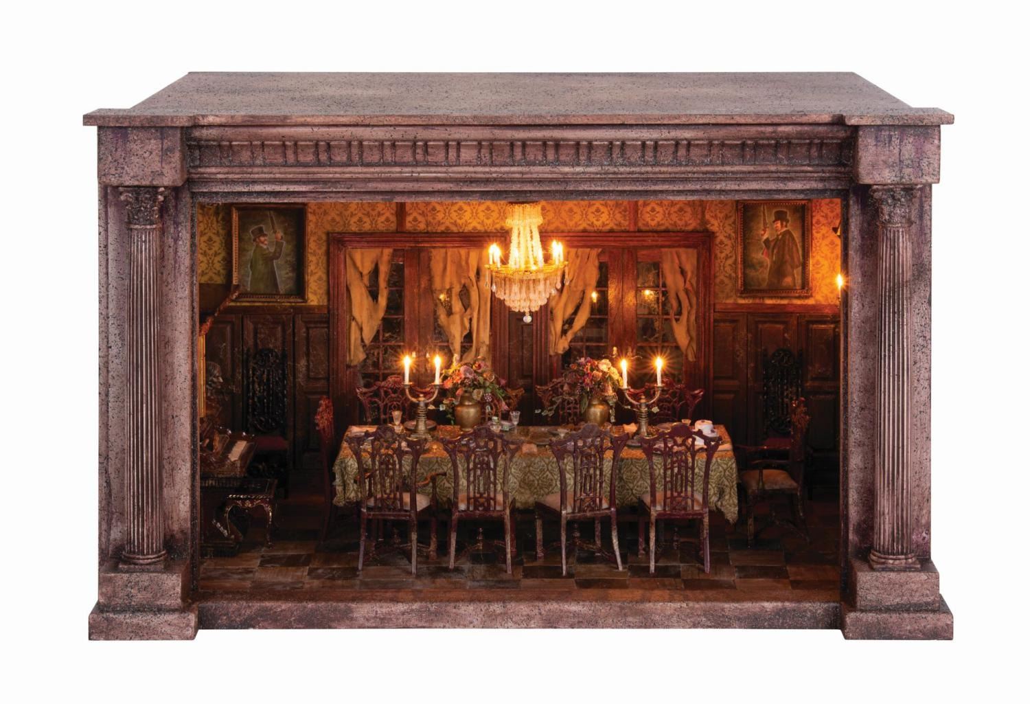 Included with this lot is an exclusive Non-fungible Token (NFT) companion item, created in collaboration with the artist. The NFT package contains four unique digital videos; The first video puts YOU inside the scene by "flying through" the physical miniature model as if you were actually there! The second video is an on-camera interview with the artist herself, Bridget McCarty, who explains her process and inspiration behind the miniature piece. The last two videos are animation style productions that showcase the hauntingly fun scene, focusing on the iconic organ and ornate banquet table. This exclusive NFT is a limited edition 1 of 1, that preserves provenance and establishes authenticity of all items in the lot. There's also a scannable identifier sticker affixed to the physical miniature model that links back to the digital NFT record of authenticity, connecting the digital and tangible item together within the singular lot. Additionally, the lot comes with a bookshelf ready acrylic display that contains a video of the miniature walk through.Â