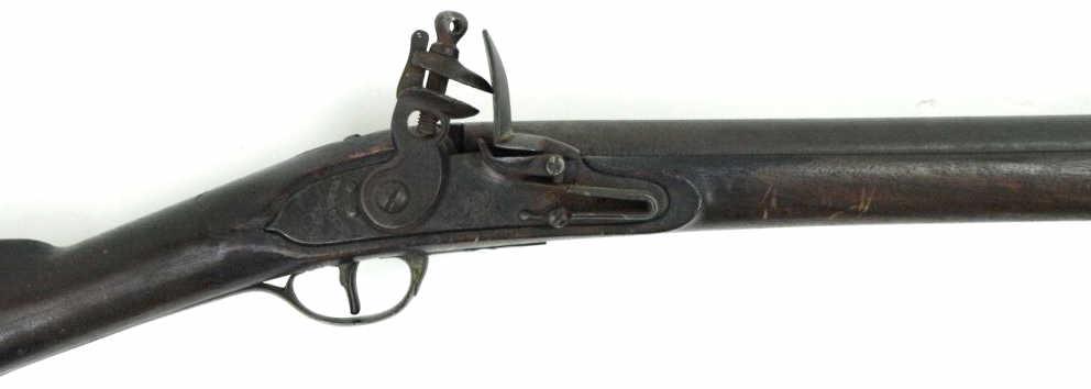 Flintlock musket 41 1/2" barrel, full walnut stock, brass furniture, lock marked Bridgewater 1819. Strongly believed many were made under contract for the US Office of Indian trade to give as treaty payment in the 1812 Creek & Seminole Wars. Musket remains in original flintlock configuration, full functioning and all original parts are complete. Interesting and scare early rifle, NO FFL required. Ref. Flaydermans 9B-005 page 499.
