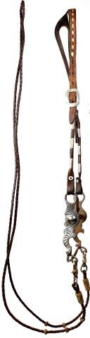 unmarked split ear headstall, North & Judd buckles, vintage braided leather closed reins, overall very good condition. Est. 275-375