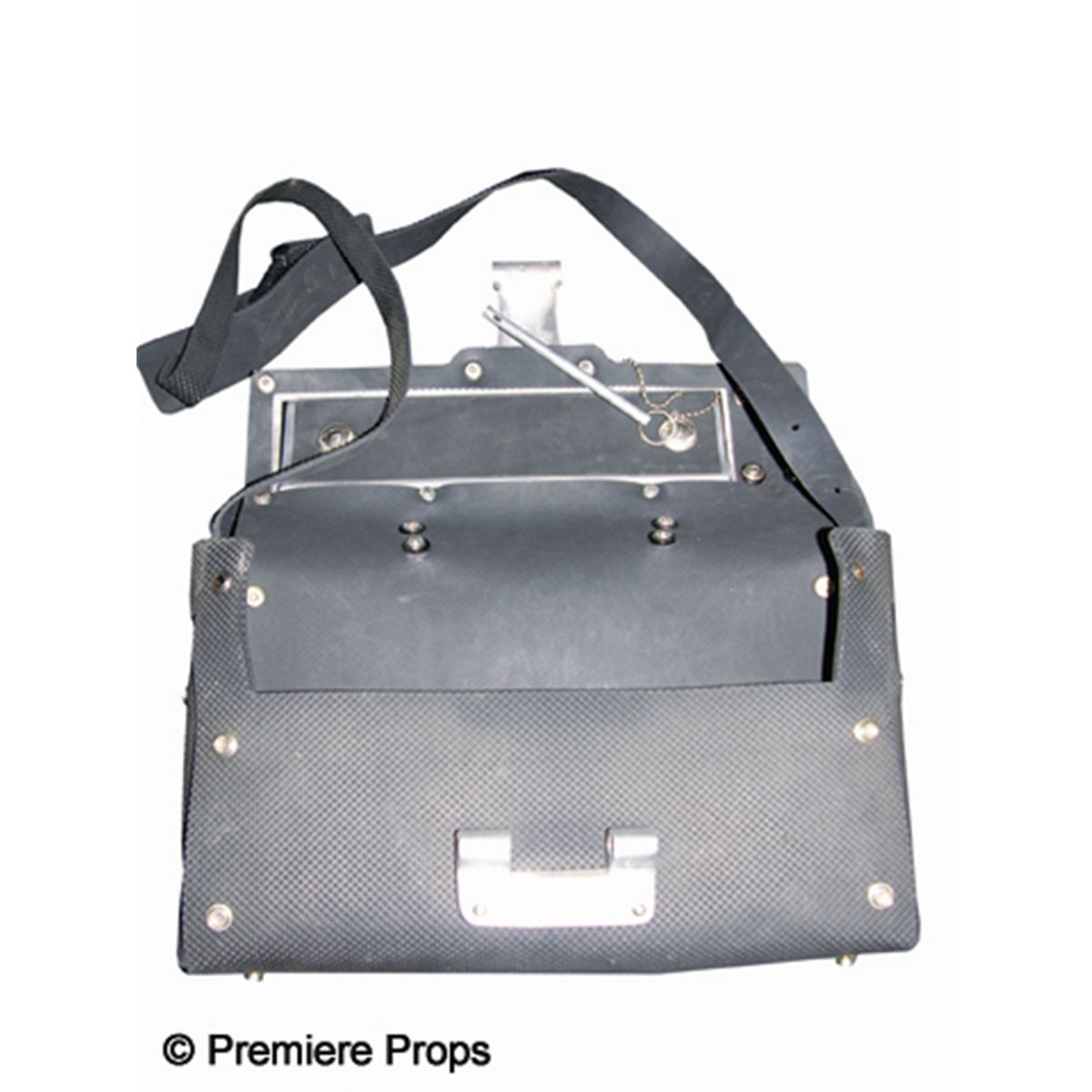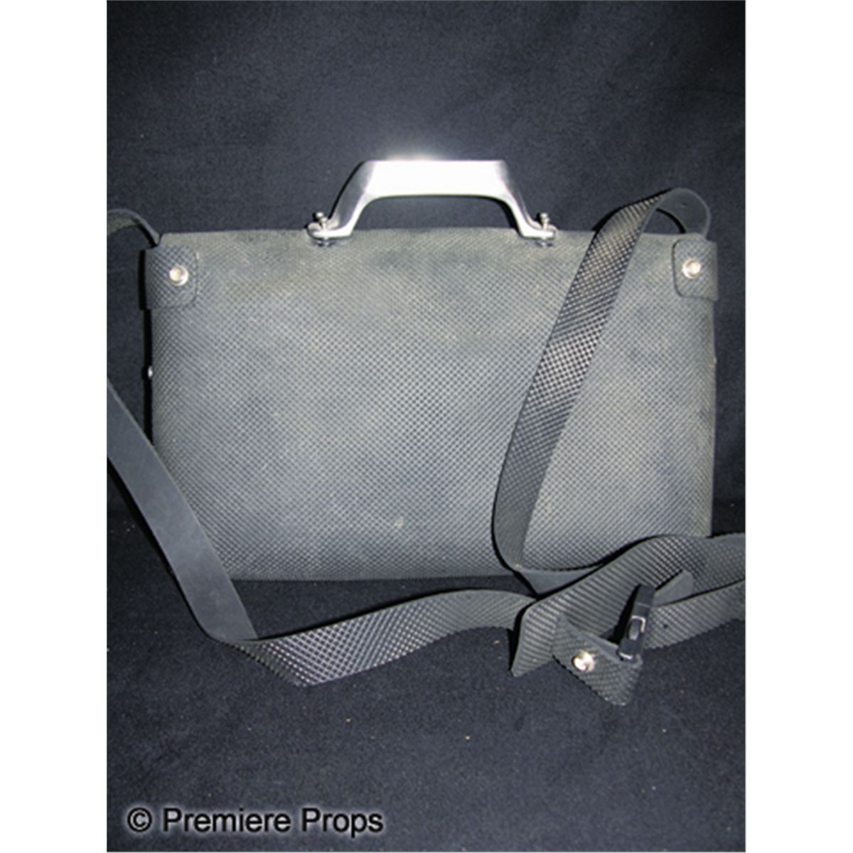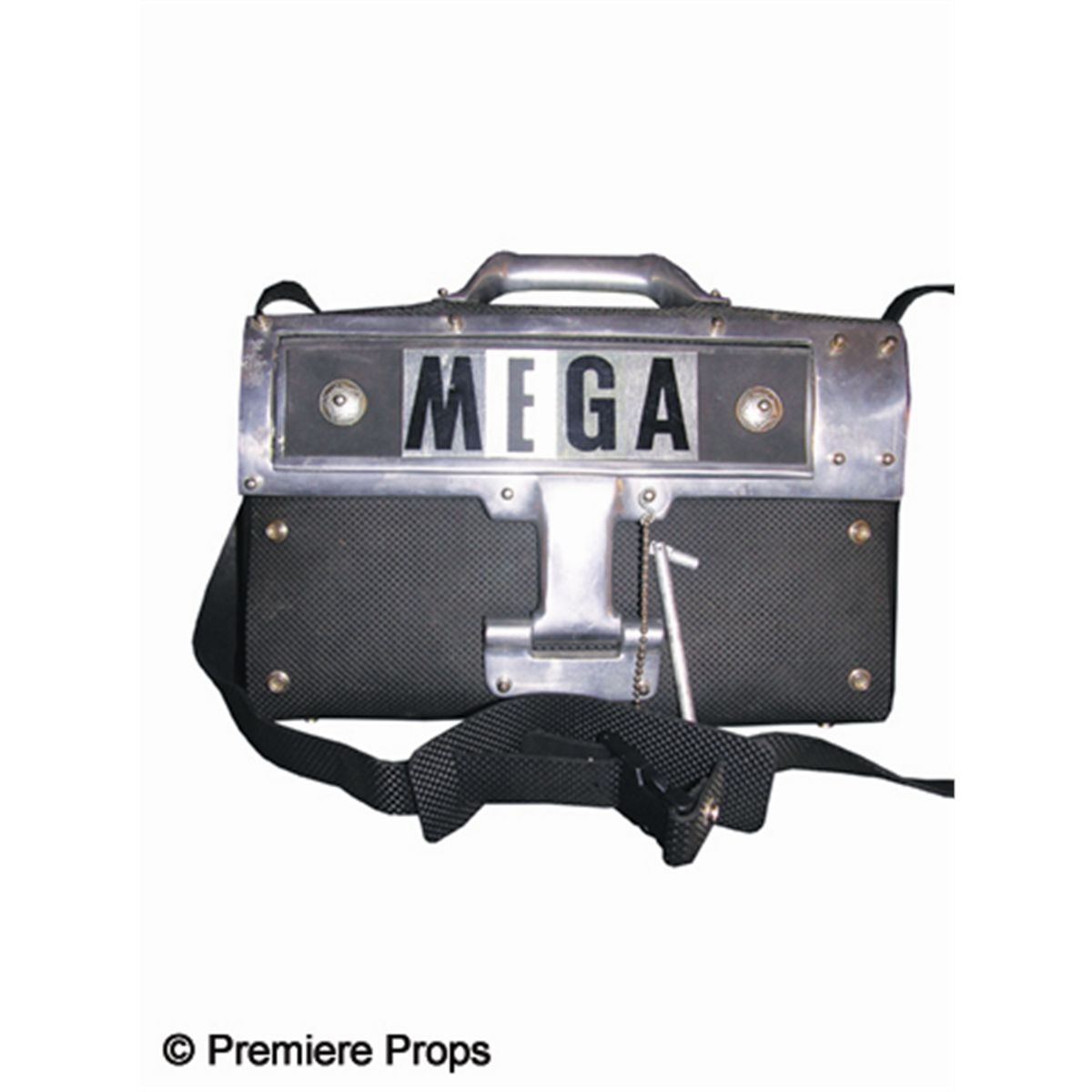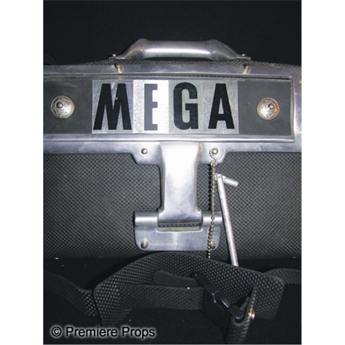 Heavy rubber briefcase used in the production of Sylvester Stallone's Judge Dredd (1995). Includes the word "Mega" rendered via stickers on the briefcase's side. (16x10x4)