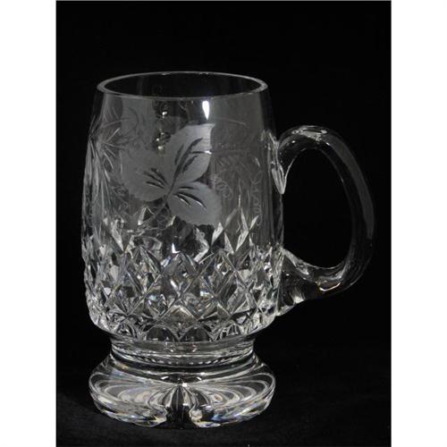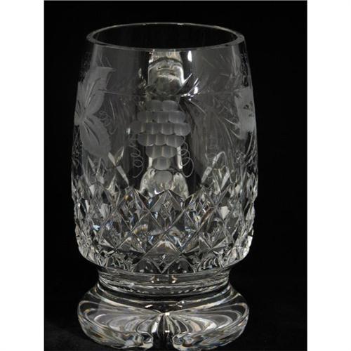 Brierglass Tankard, Brierglass Crystal with hand etched grape motif. Brierley Hill Glass Co. Ltd. Talbots Lane, Brierley Hill, UK. 6 3/8"H, 4"D. Condition: no damage noted.