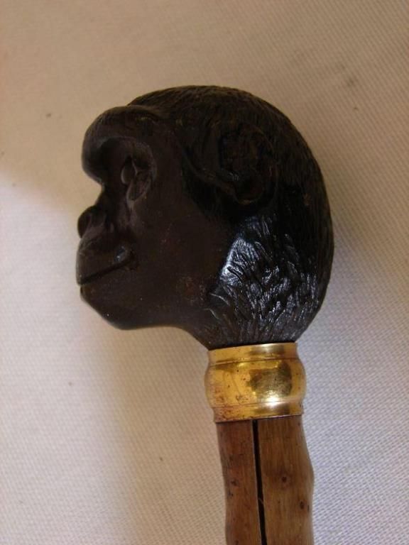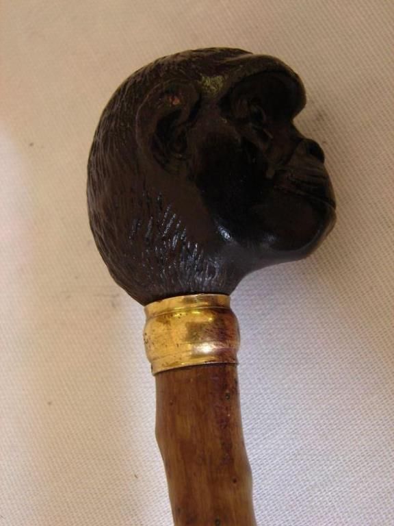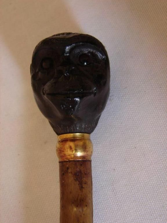 Brigg Waling Cane with carved wooden Monkey Finial, measures 28.5inches