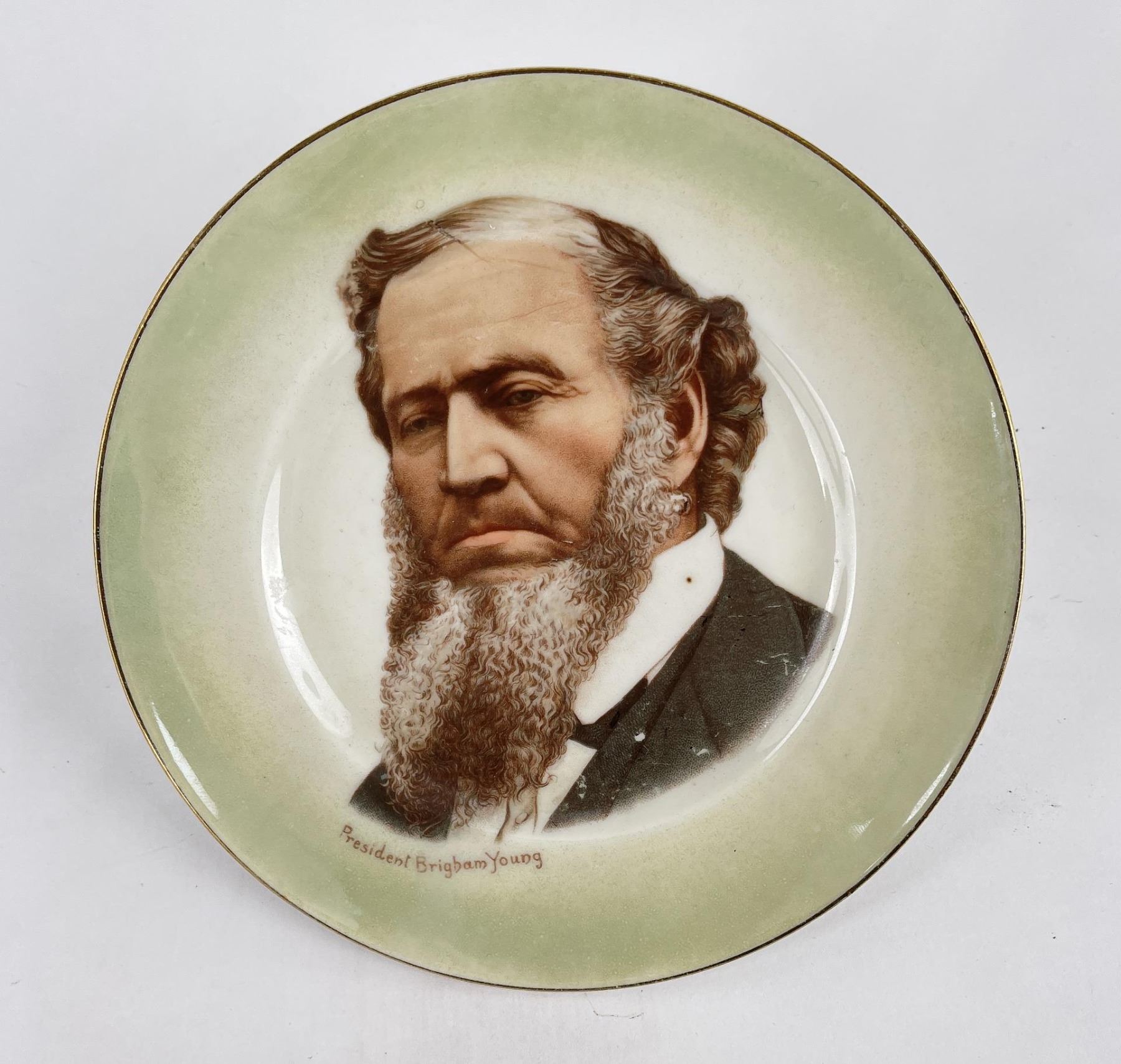 Plate reads President Brigham Young. Second president of the Mormon Church 1847-1877. 6" diameter.