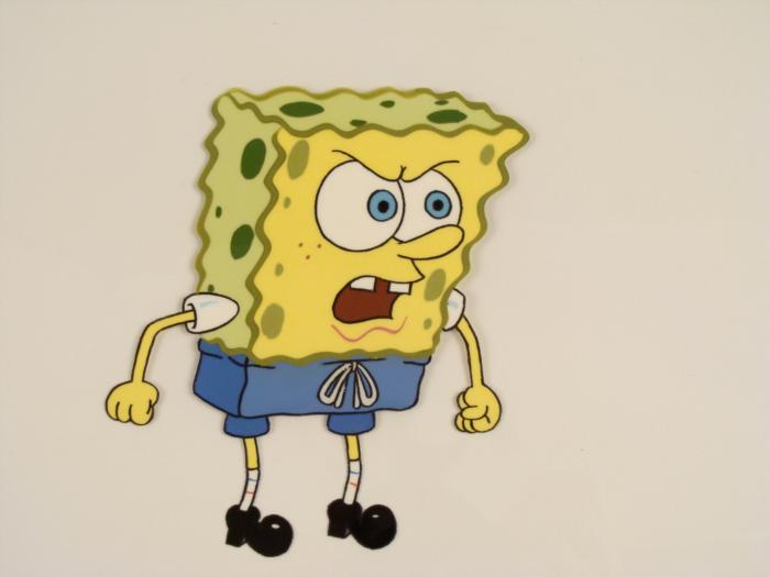 This original animation cel is from the Nickelodeon TV show SpongeBob Squarepants.  The story takes place under the deep blue sea in Bikini Bottom, where SpongeBob resides. SpongeBob, who is a yellow, porous sponge, is your typical happy-go-lucky character, as he is always cheerful and enjoys making people laugh. Patrick Star, SpongeBob's neighbor who is a starfish, is your average children's show idiot, as he boasts knowing nothing and is often getting himself into ridiculous situations. Between the homes of these two lies the home of the miserable Squidward, a squid, who is known for being grouchy and playing tricks on SpongeBob and Patrick. Both SpongeBob and Squidward work at the Krusty Krab, a fast food business run by the greedy money-loving Mr. Krabs, a crab, the arch rival of the evil, possibly misunderstood, Plankton. Another neighbor, Sandy Cheeks, an athletic squirrel who normally wears an astronaut's space suit, was introduced in "Tea at the Treedome." She spends most of her time inventing and experimenting.  SpongeBob has bright blue eyesOriginal Production Animated Cel Overall Size of Cel: 10 1/2" x 12 1/2"  Very Good ConditionThis is an original hand-painted cel set-up used in the production of an episode of "SpongeBob SquarePants." Each one-of-a-kind set-up represents a slight change in position of the characters. When individually photographed and projected in rapid succession, the images appear to move.