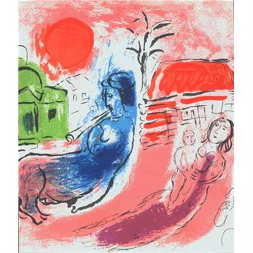 <tr><td>Title:Bright Colorful Chagall Lithograph The Flutist</td></tr>