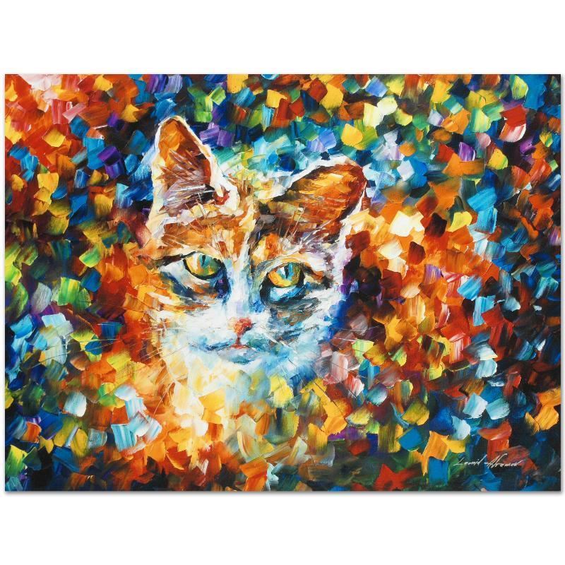 Leonid Afremov's (1955-2019) masterful use of color and texture make his paintings unique collectibles that are sure to brighten any wall. "Bright Eyes" is a limited edition giclee on canvas. The piece is numbered and bears the artist's authorized signature. This piece comes gallery wrapped. Includes Letter of Authenticity. Measures approx. 24" x 18" (image).