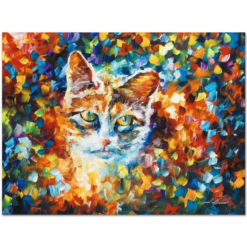 Leonid Afremov's masterful use of color and texture make his paintings unique collectibles that are sure to brighten any wall. "Bright Eyes" is a limited edition giclee on canvas. The piece is numbered and bears the artist's authorized signature. This piece comes gallery wrapped. Includes Certificate of Authenticity! Measures approx. 24" x 18" (image).