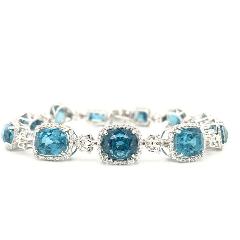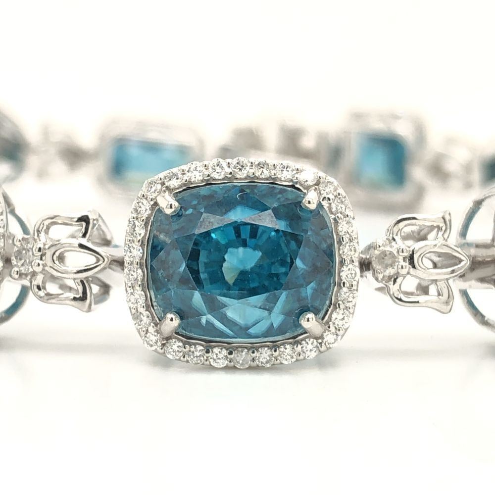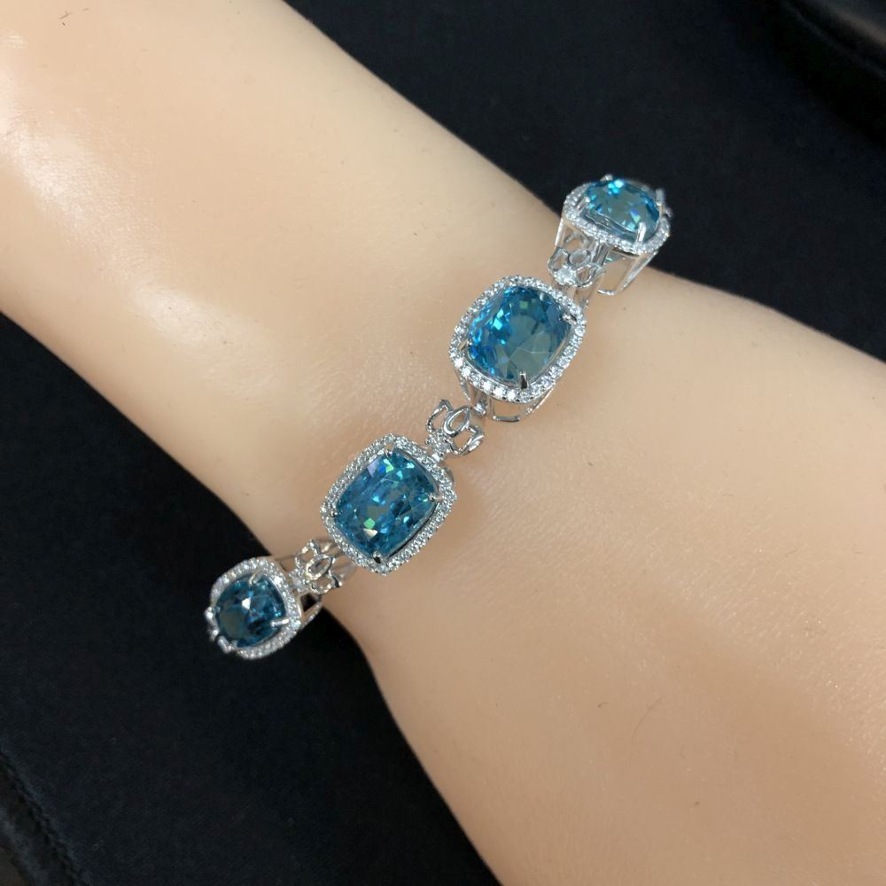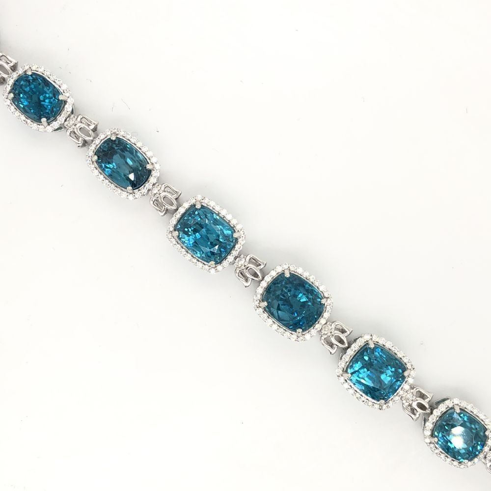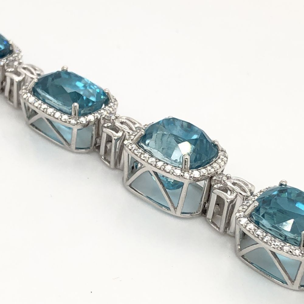 Bright, Mixed-Cut Blue Zircon and Diamond Bracelet