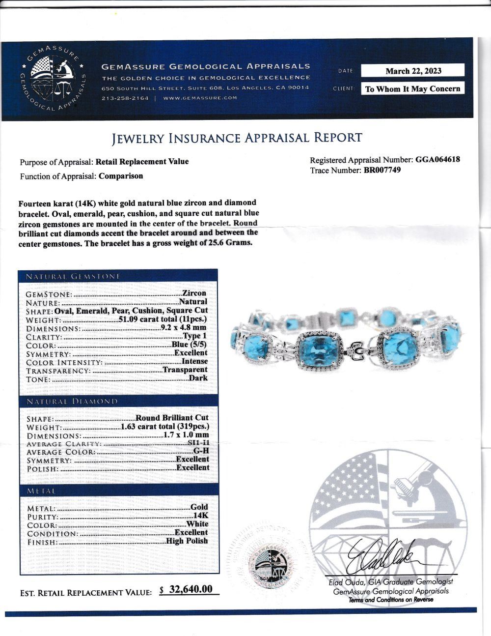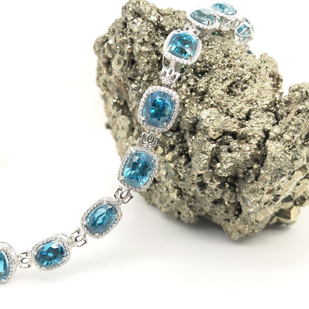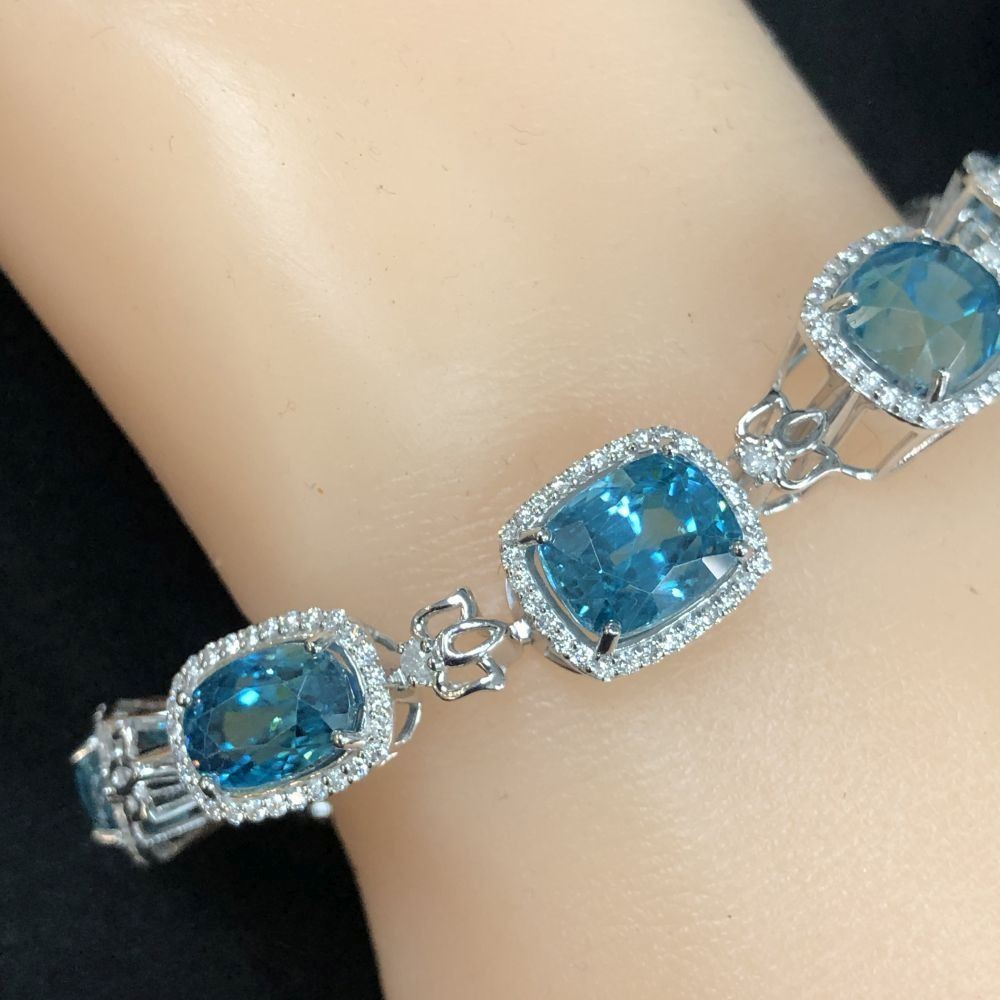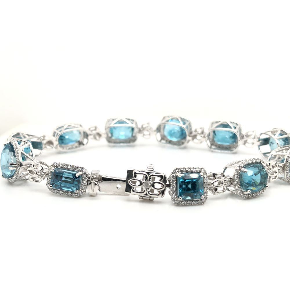 Bright, Mixed-Cut Blue Zircon and Diamond Bracelet