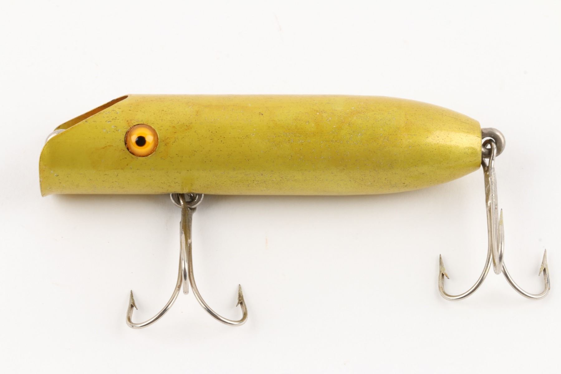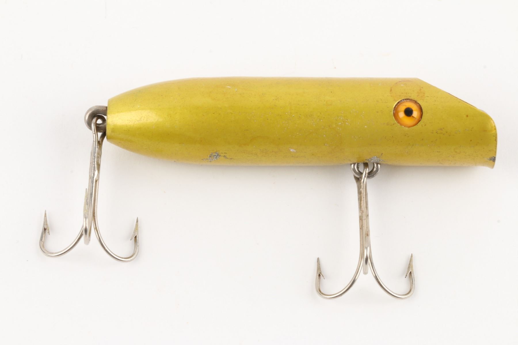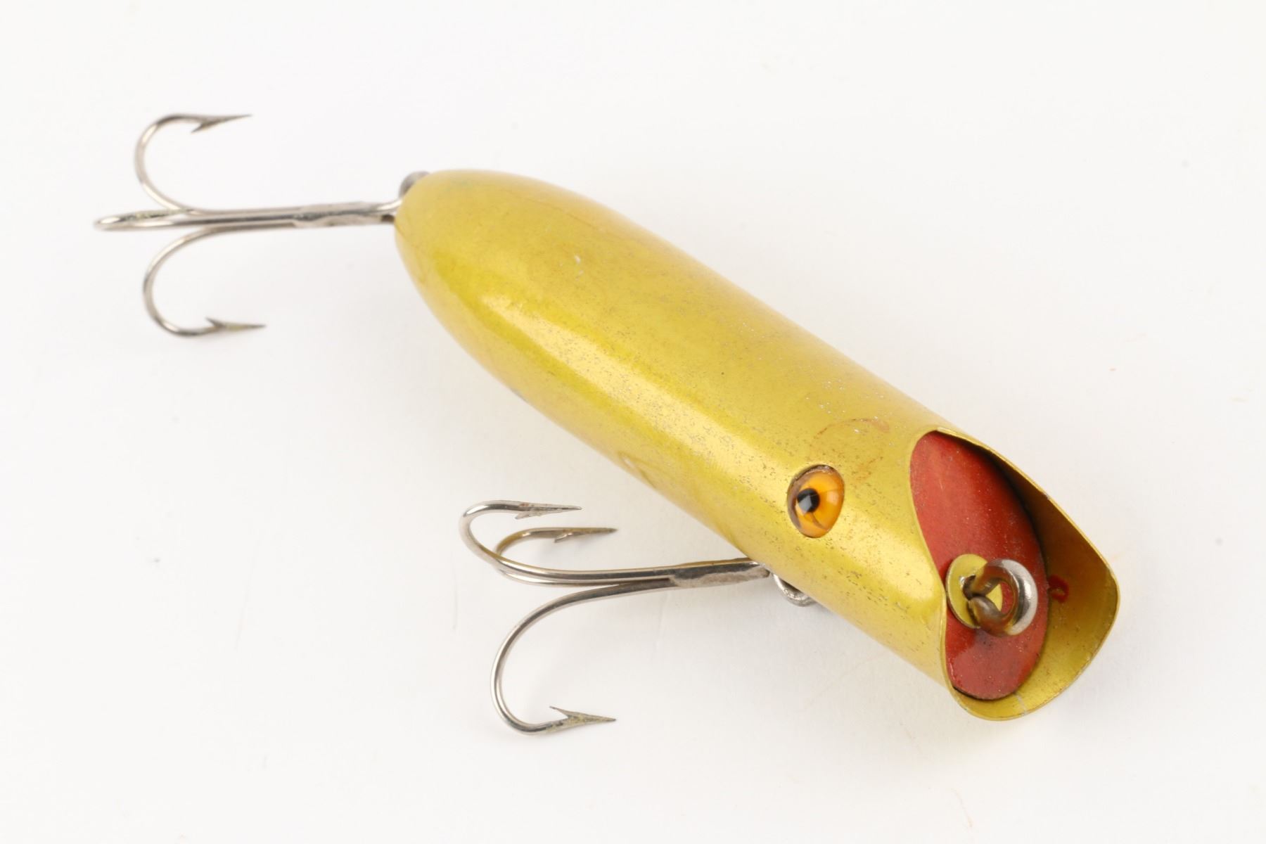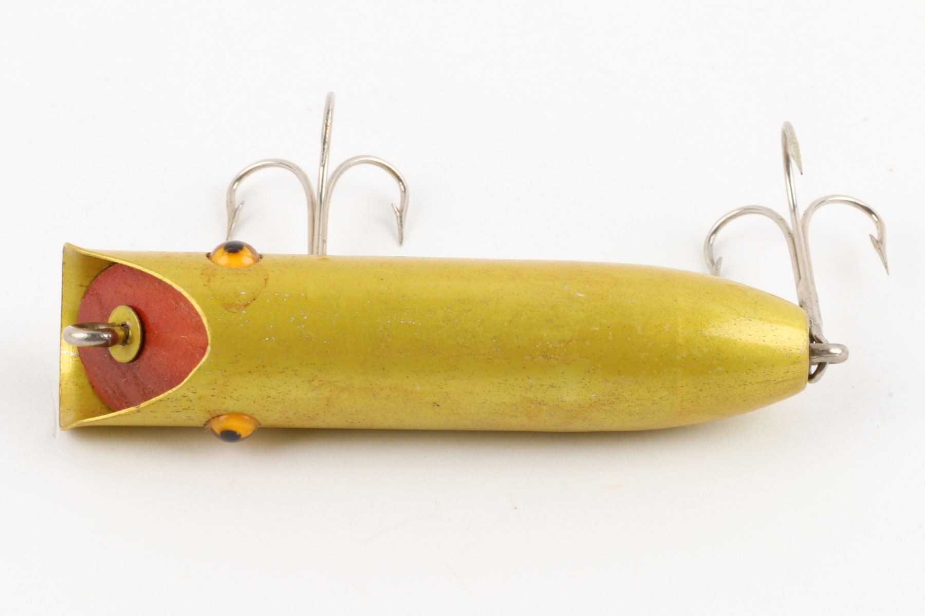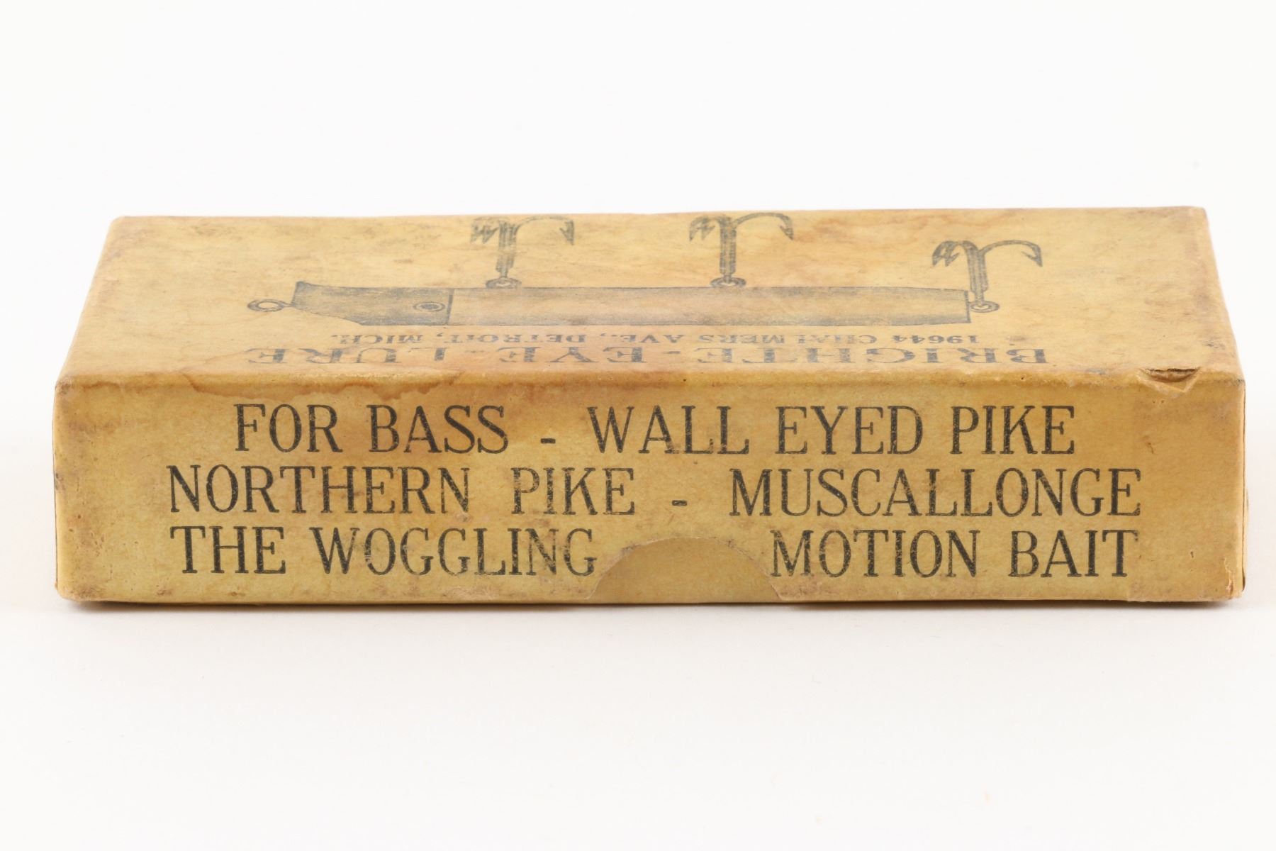 Bright-Eye Lure, United States. 1930s. Boxed. Material: Wood, Aluminum. Quantity: 1. Grade: EX. 4.5" x 2" x 1" Est. $150-250.