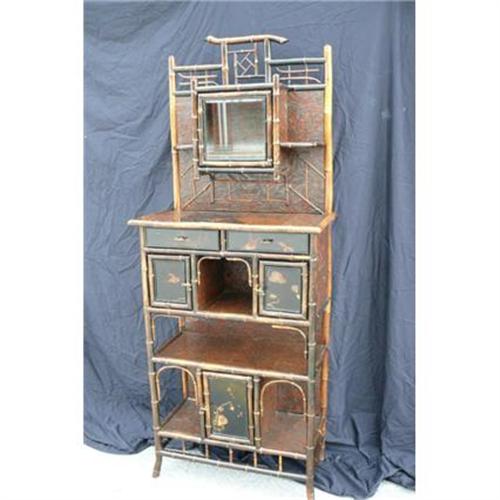 Brighton Beach impressive bamboo etagere with jappaning and small cabinet.