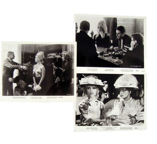 Brigitte Bardot Original Photo Lobby Cards - Called by credits and audiences alike one of the most beautiful women of all time, Brigitte Bardot was one of the all time sex symbols of the 1950's and 1960's. Her natural beauty changed the entire look and taste of a whole new generation of women. Always independent and extremely stubborn, iconoclastic and passionate, she is now one of the loudest and most successful voices for animal rights in the world, having been arrested for many of her protests. These are three rare original lobby photos from some of her most famous movies. (B&W, 8"x10").