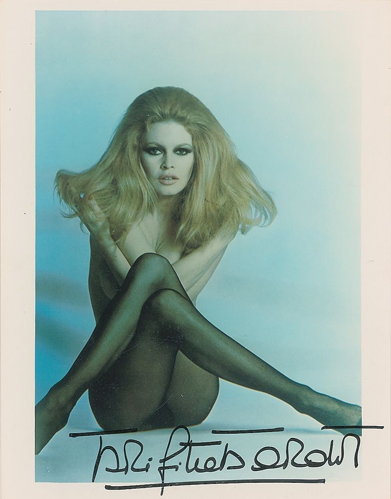 Two attractive color glossy 8 x 10 photos of Bardot, each signed in black felt tip. In fine condition, with a few mild surface marks and creases.