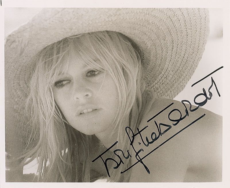 Two lovely glossy photos of Bardot, 8 x 10 and 10 x 8, each prominently signed in black felt tip. In overall fine condition, with a couple light bends to corners.