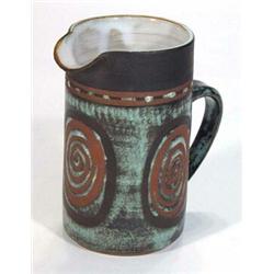 Briglin pottery cylindrical jug, decorated in brown abstract pattern, impressed marks to base, 15…