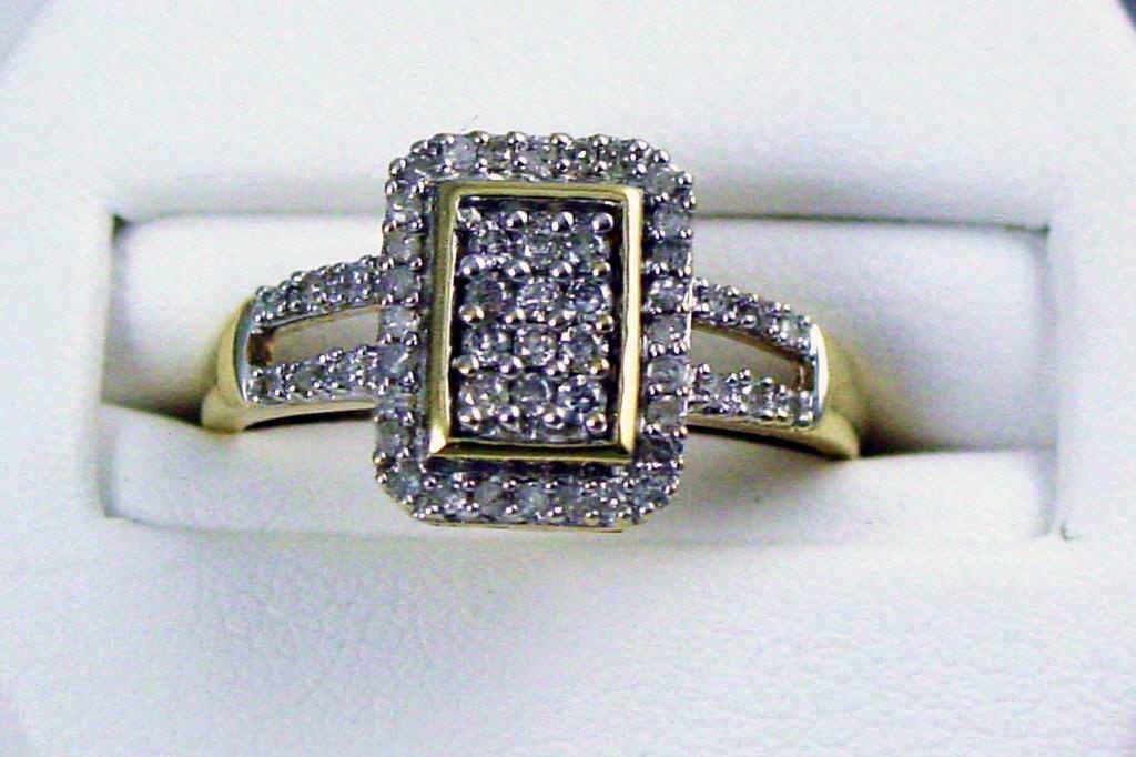 Brilliant 10K Yellow Gold Ladies Ring Pave set with over forty round diamonds weighing approx.0.40 carats of H-I colors. Retail $1,250.00Pave set with over forty round diamonds weighing approx.0.40 carats of H-I colors. Retail $1,250.00