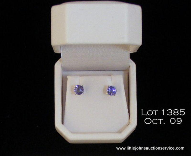 Brilliant 14 karat white gold ladies earrings set  with two fine round matching Tanzanite weighing  1.55 carats. Retail $1,250. Estimate  $400-$600.  Nice.