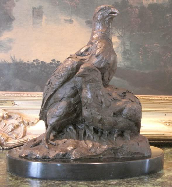 Partridges, Bronze Sculpture, 12"L x 8"W x 12"H 20 lbs This bronze sculpture was produced using the "Lost Wax" casting method. The"Lost Wax" Cast method is the most precise metal casting technique in existence, ensuring exquisite detail of the original host model which is usually sculpted in clay or wax. This "Lost Wax" casting method is an extremely labor intensive and expensive process, but the end results produce a Heirloom Quality Masterpiece!