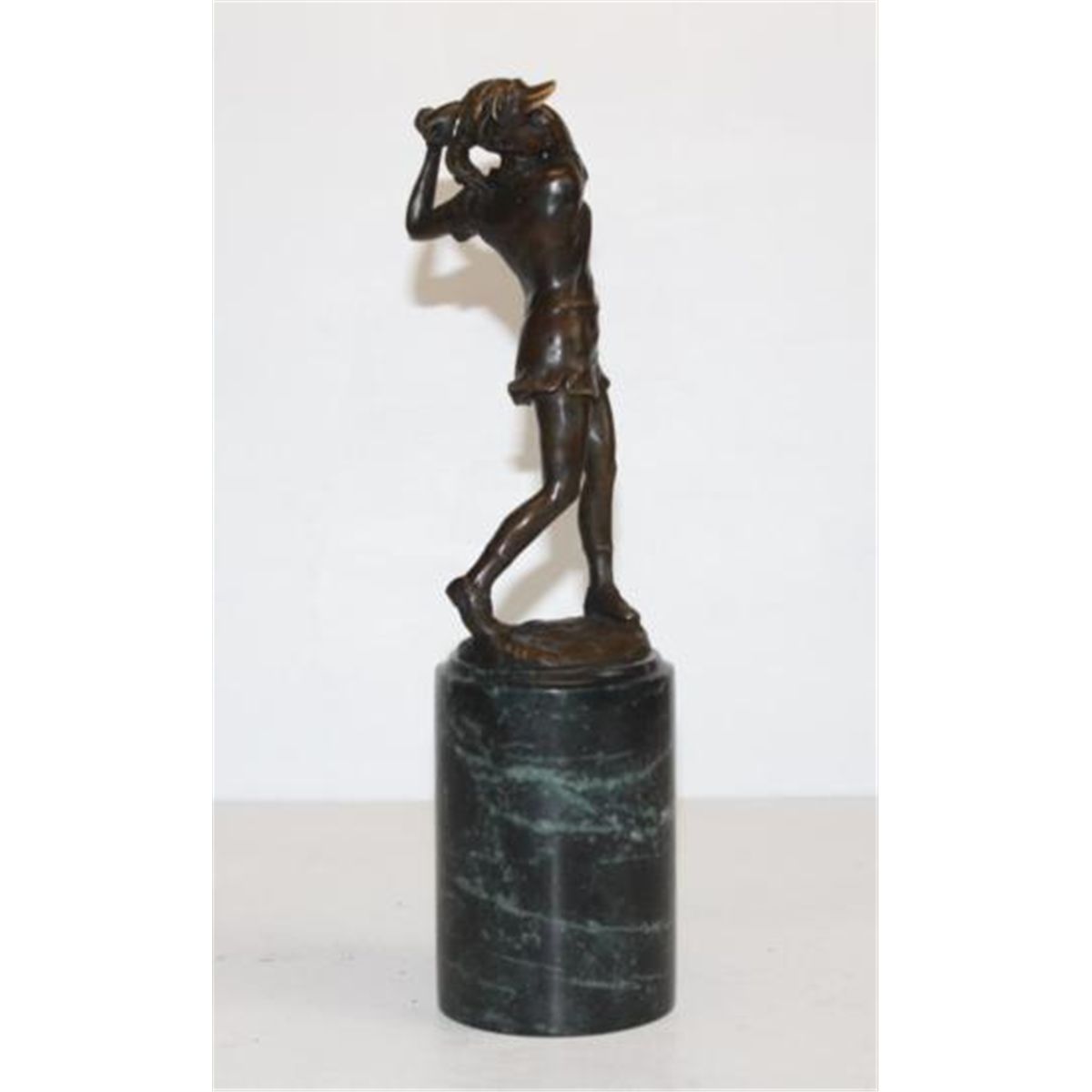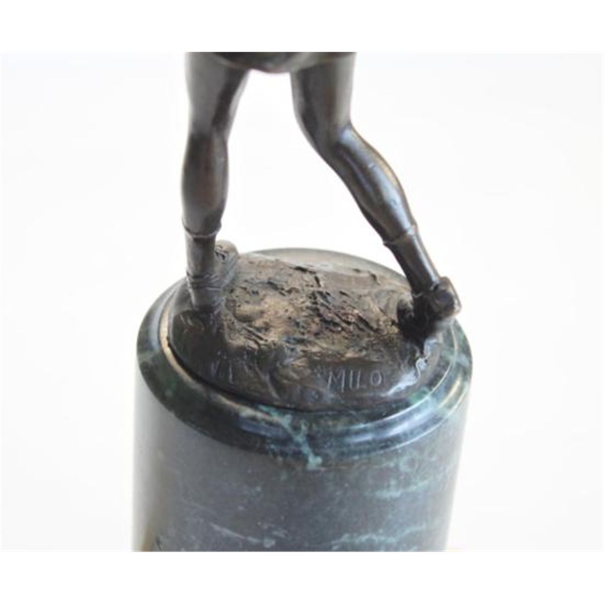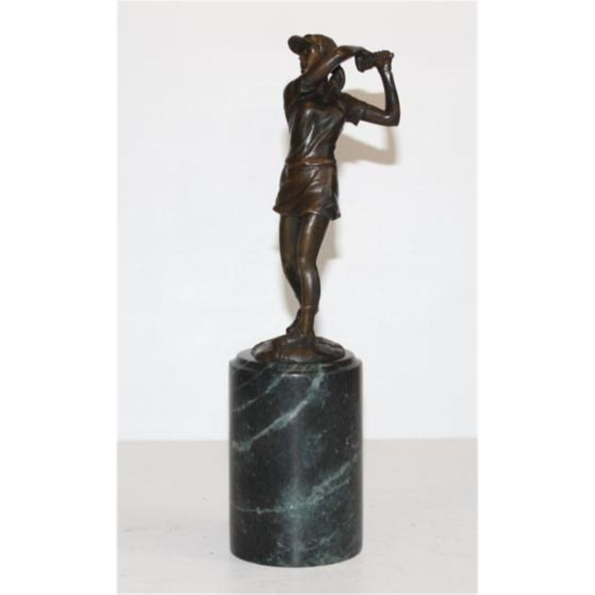 Brilliant Lady Golfer Swinging, Bronze Sculpture, After Milo 12"H x 4"W x 3 1/4"D 7 lbs. This bronze sculpture was produced using the Lost Wax casting method. The Lost Wax Cast method is the most precise metal casting technique in existence, ensuring exquisite detail of the original host model which is usually sculpted in clay or wax. This Lost Wax casting method is an extremely labor intensive and expensive process, but the end results produce a Heirloom Quality Masterpiece!