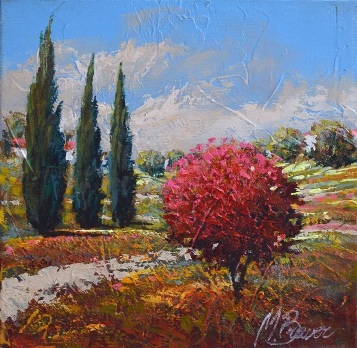 Artist: Mark Braver (b. 1958)  - Title:  Memories   - Medium: Original Acrylic on Canvas - Signature: This one-of-a-kind work is hand-signed by the artist at the bottom of the image - Image Size: Approximately 9 inches x 9 inches  - Framed: Stretched and Ready for Framing - Details: This work comes with a Certificate of Authenticity -  Mark Braver's artwork is unique in its vivid colors and special textures.  - His compositions come to life on the canvas in an abundance of colors while his unique layering and texturing techniques lend the paintings an unusual quality.