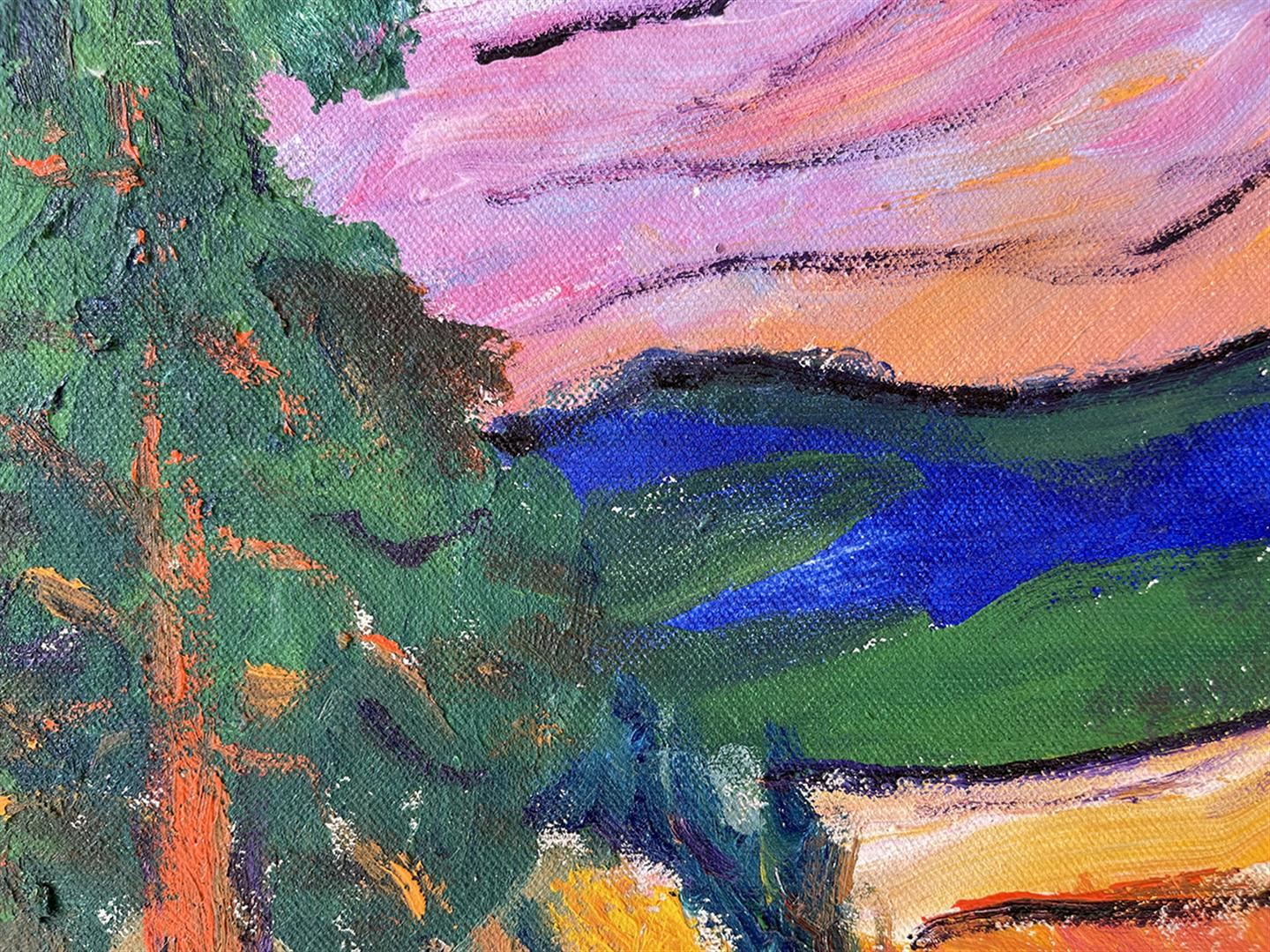 Brilliant original acrylic on canvas. Hand signed by Artist. This artwork comes framed ready to hang. Art size16x20 inches. Frame size 22x26.