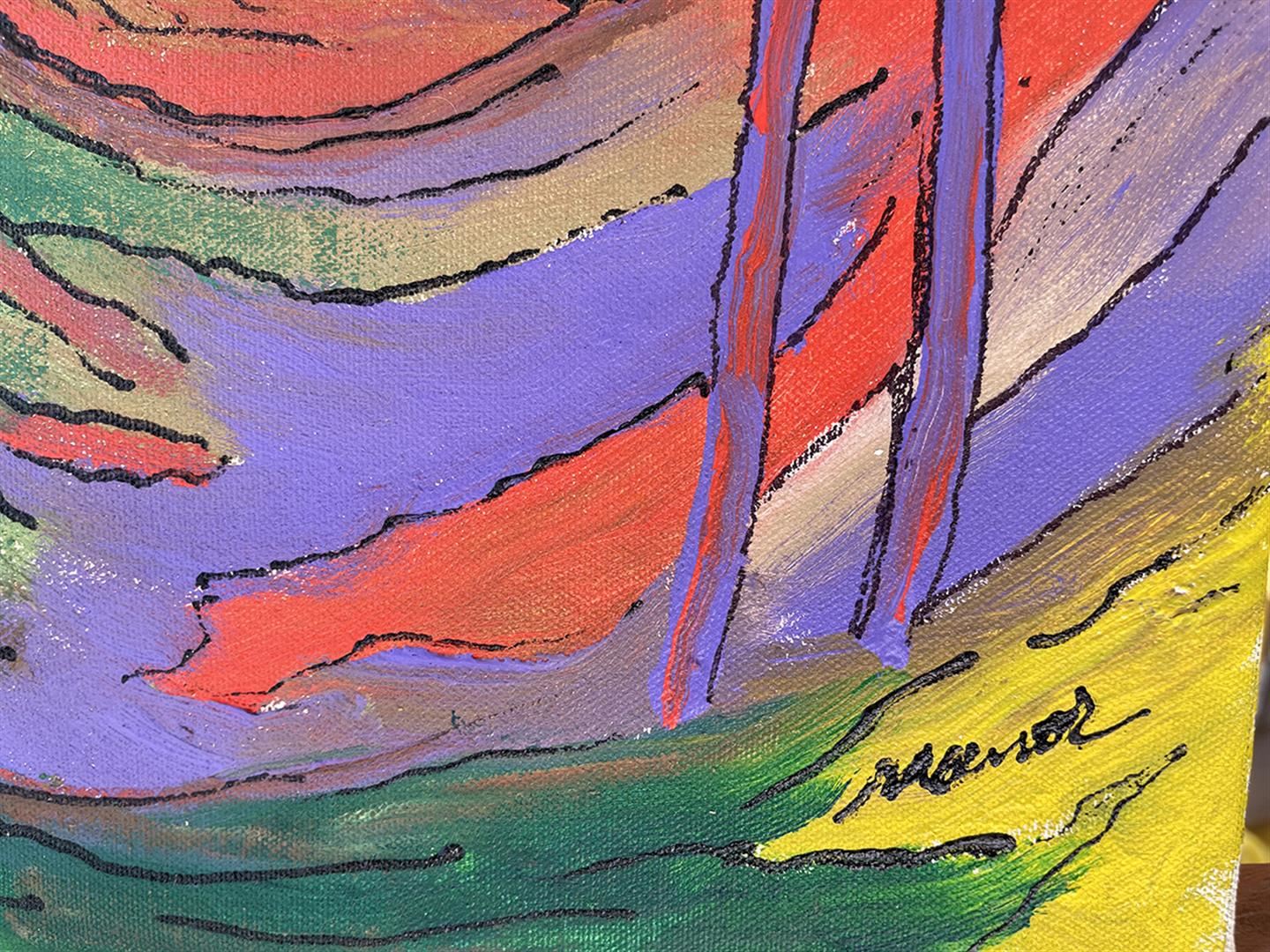 Brilliant original acrylic on canvas. Hand signed by Artist. This artwork comes framed ready to hang. Art size 12x16 inches. Frame size 18x22.