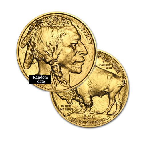 One piece Brilliant Uncirculated $50 1oz Gold Coin American Buffalo - Random date - Dates Of Our Choice.