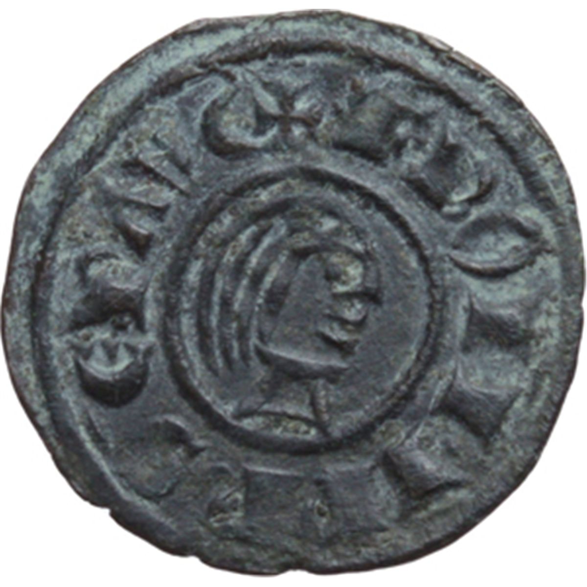 Monete e Medaglie di Zecche Italiane. Brindisi. Federico II (1197-1250). Mezzo denaro circa 1244. Sp. 129. MIR 114. MI. g. 0.52 RRR. SPL.