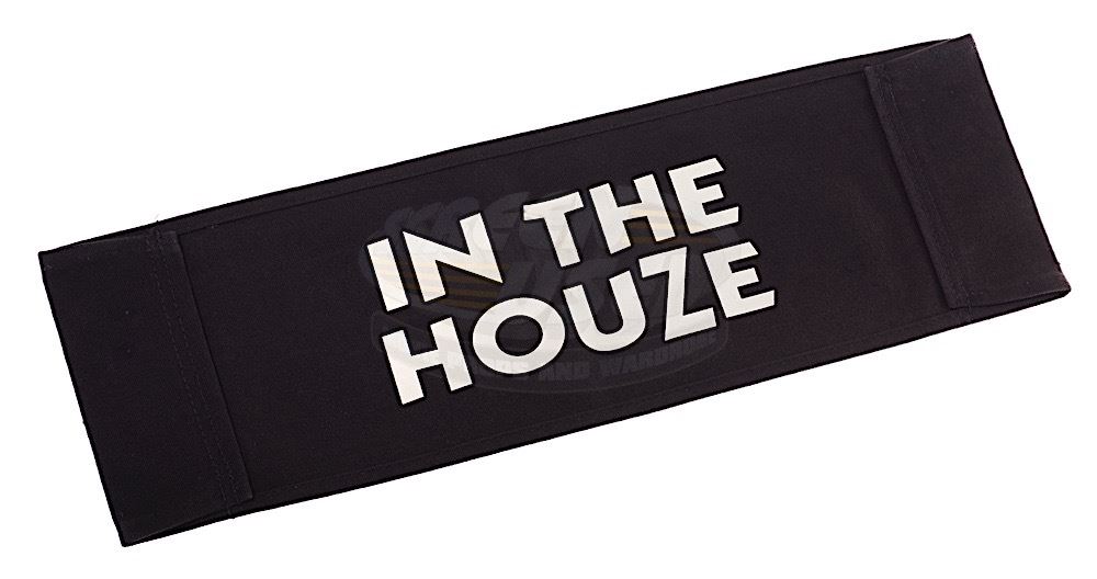 (Touchstone Pictures, 2008) This chair back was acquired for use by Eugene Levy on set during filming and features the film's working title "In The Houze" on one side and "Howie" on the reverse side. The black canvas chair back is in very good condition.