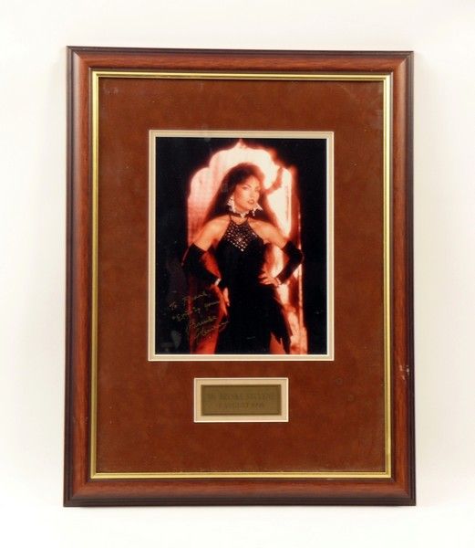 Brinke Stevens is the goddess of slasher films. Truly one of the most breathtaking women in showbiz, she inspired her late legendary graphic artist husband Dave Stevens to used her image in many of his works including the classic "The Rocketeer". Ms. Stevens does not fit the mold of such an exquisitely beautiful actress-model, in that she double-majored in biology and psychology, received her master in marine biology from Scripps Institute of Oceanography, and studied seven foreign languages! This is a rare framed and matted autographed photo. (Approx. 20 1/2" x 16").