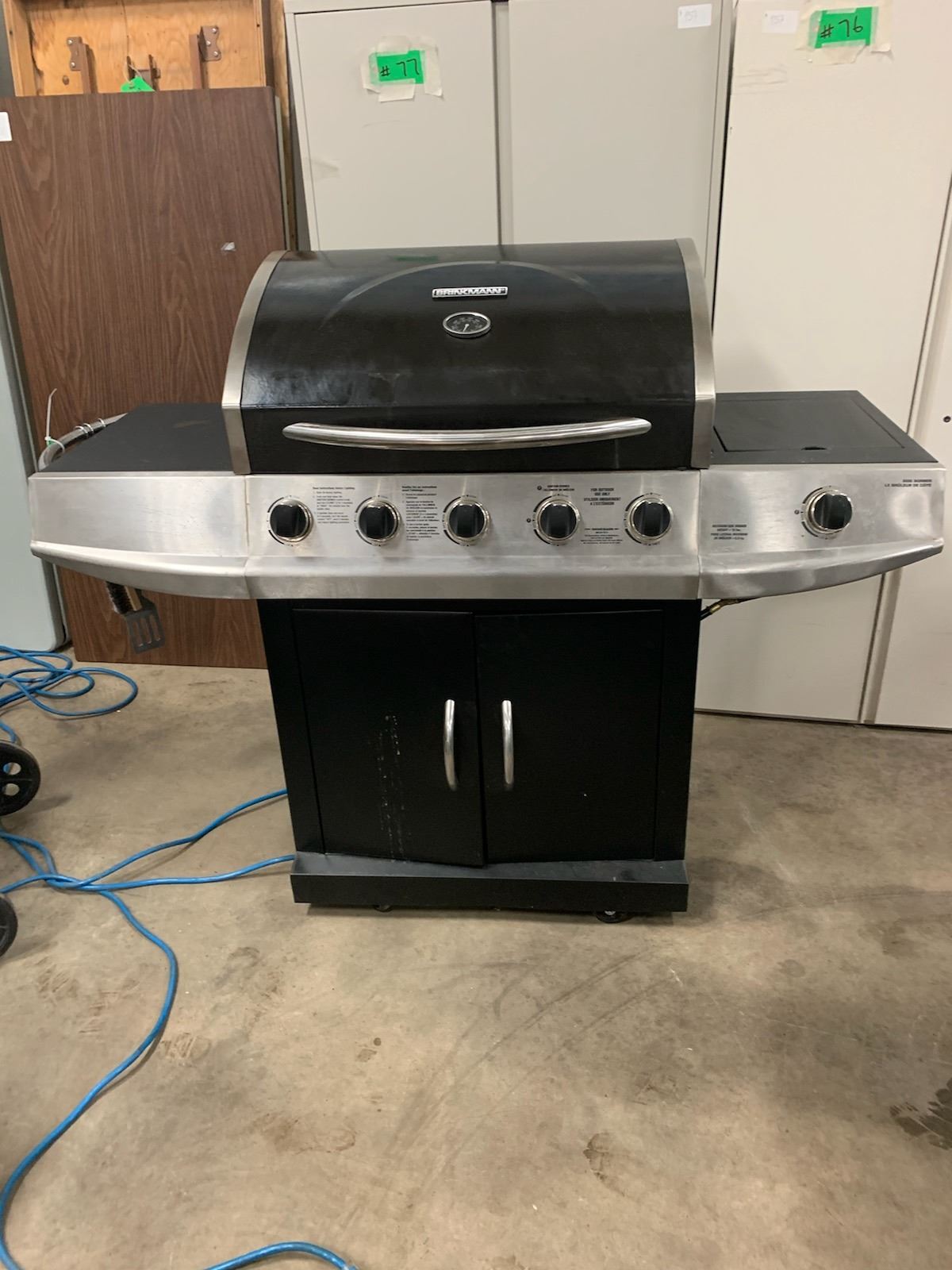 Brinkman 5 burner Propane BBQ has side burner,heat shields id say still have 90 % life left, side burner doesn't look like its ever been used...comes with cover...used