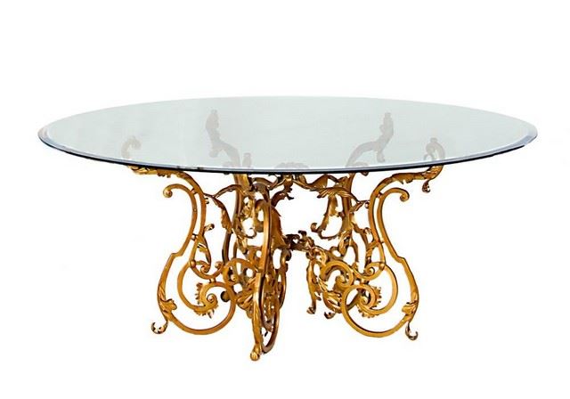 Bristol Buffet Table - Romantic and versatile, the Bristol collection can be painted any color with customizable fabric insets and backings. Items from this collection have been used for European, South East Asian, shabby-chic and garden themed events. This collection was also used the wedding of Kim K. and Kris Humphries. Dimensions: 2'9'' H x 6'8 Diameter. Rental price associated with this item: $603.75