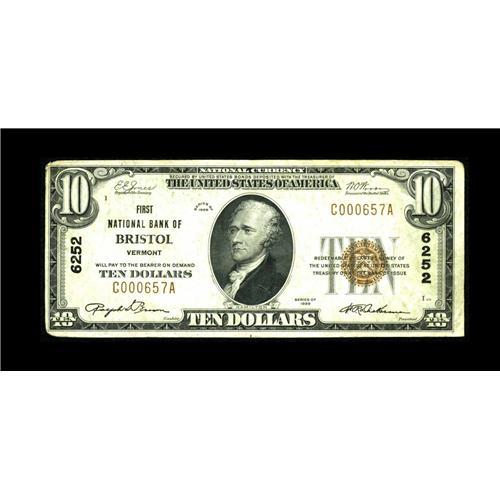 Bristol, VT - $10 1929 Ty. 1 The First NB Ch. # 6252Jus